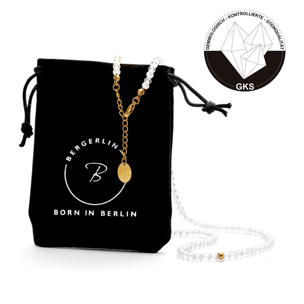 Erweitere deine Schmuckkollektion mit den erlesenen Bergkristall-Halsketten, die nicht nur mit ihrem auffälligen Aussehen, sondern auch mit ihrer tiefgreifenden Geschichte punkten. Der Bergkristall, ein Stein, der seit jeher verehrt wird, ist weitläufig für seine Klarheit und seinen reinigenden Effekt bekannt. Jede BERGERLIN Bergkristall-Halskette wird sorgfältig aus ausgewählten Bergkristallen erstellt, wodurch jedes Schmuckstück in seiner Ästhetik unverwechselbar ist. Die leuchtenden, transparenten Farben, die durch bezaubernde Lichtreflexe hervorgehoben werden, kreieren einen atemberaubenden Effekt, der bewundernde Augen auf dich ziehen wird.