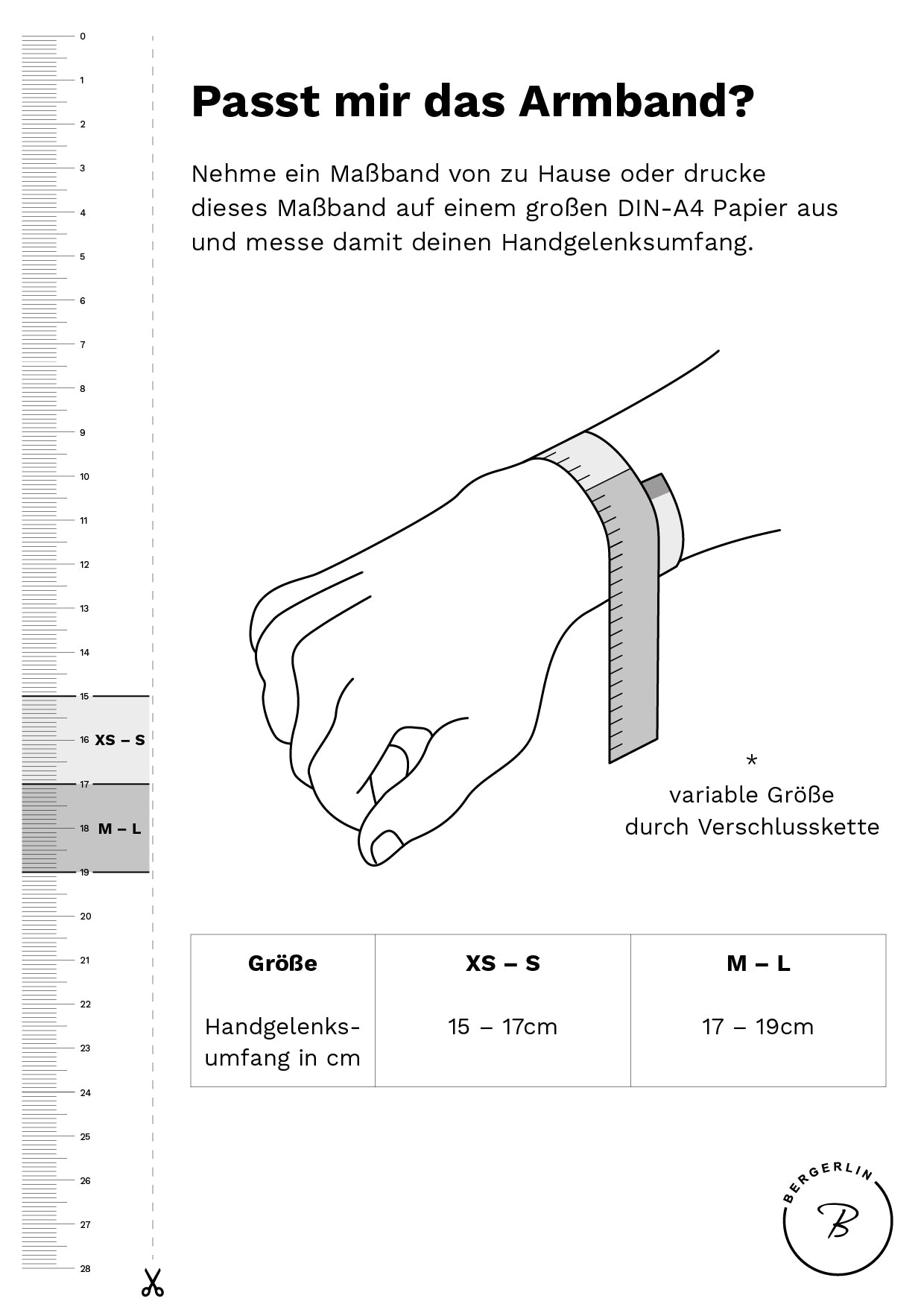 • Größen: XS-S (15-17 cm) und M-L (17-19 cm)