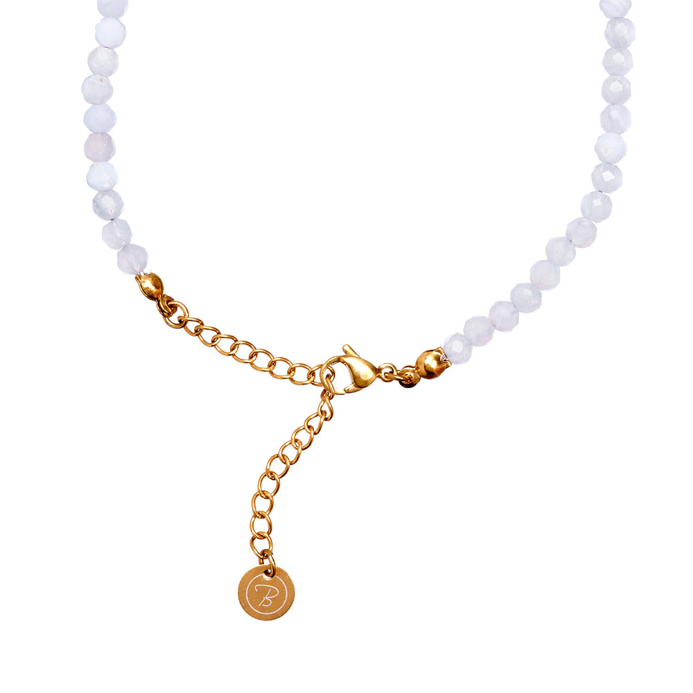 Chalcedon wird eine harmonisierende und kommunikationsfördernde Wirkung zugesprochen. Traditionell gilt er als kraftvoller Talisman, der Selbstbewusstsein und emotionales Gleichgewicht fördern kann. Eine Chalzedon-Halskette zu tragen, soll angeblich nicht nur die Ästhetik steigern, sondern auch unerwünschte Energien absorbieren. Ob dies tatsächlich der Fall ist, können wir nicht mit Gewissheit sagen. Was jedoch unbestreitbar ist, ist die atemberaubende Schönheit des Natursteins – gepaart mit der Handwerkskunst von BERGERLIN.