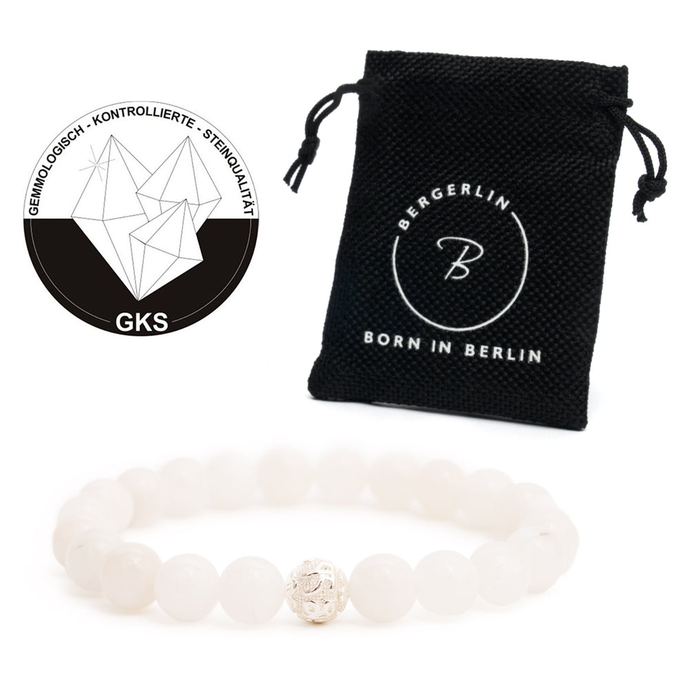 Experience the fascinating combination of elegance and mysticism with moonstone jewelry from BERGERLIN. The shimmering play of colors of this unique gemstone, which shines in soft blue, white or silver depending on the light, is reminiscent of the light of the moon on calm water. Whether as a bracelet, necklace, ring or anklet – each piece of jewelry carries the gentle energy of the moonstone and accompanies you with a special, almost magical aura.