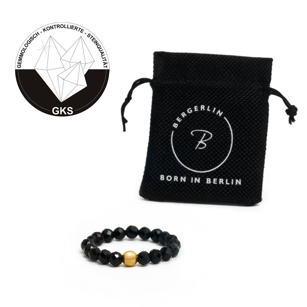 - Handgefertigter Obsidian Ring mit vergoldeter Perle